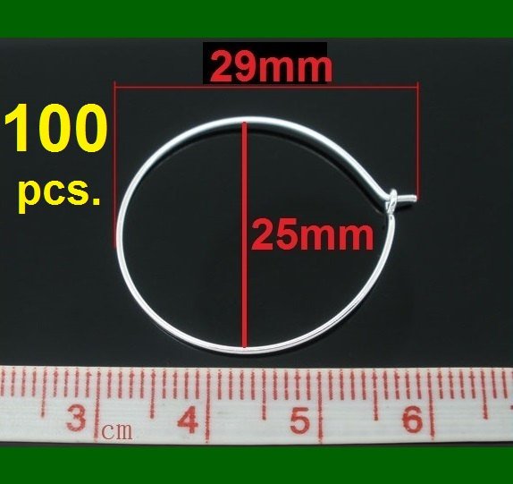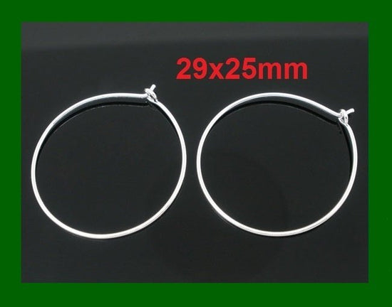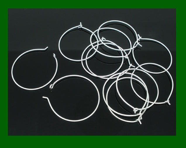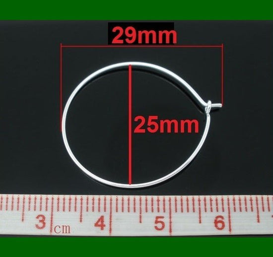 W003 - 100 pcs. Silver Plated Wine Charm/Earwire Hoop Rings - 25mm - 1 inch - 21 Gauge (0.7mm)