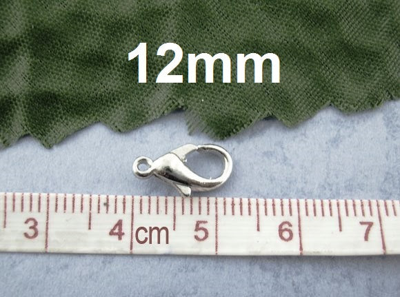 CL053 - 100 pcs. Silver Tone Lobster Clasps - 12mm X 6mm - Made of Alloy - Claw Clasps