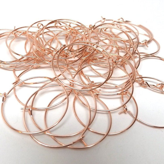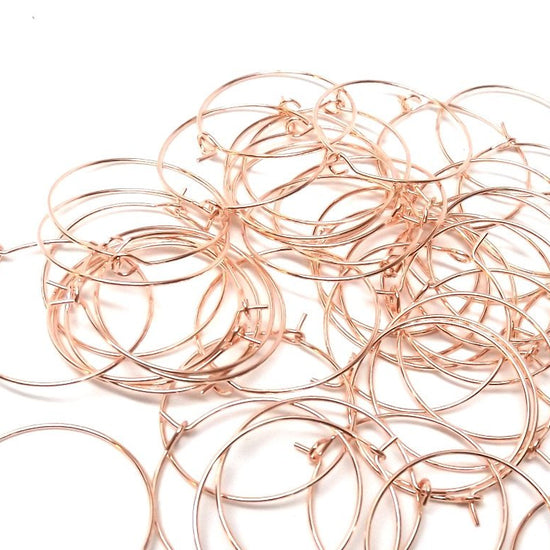 W014 - 100 Rose Gold Plated Wine Charm /Earwire Hoop Rings - 25mm - 1 inch - 20 Gauge (0.8mm Thick)