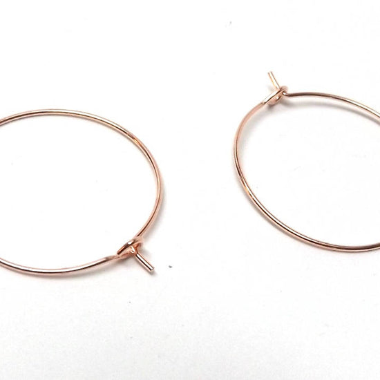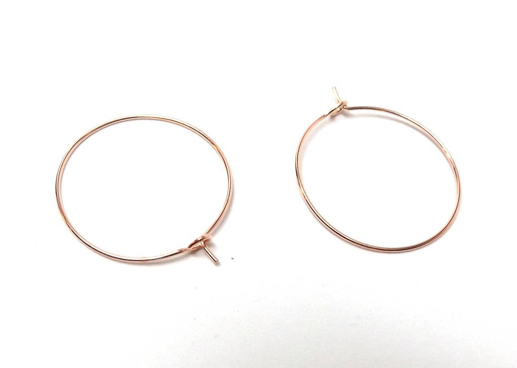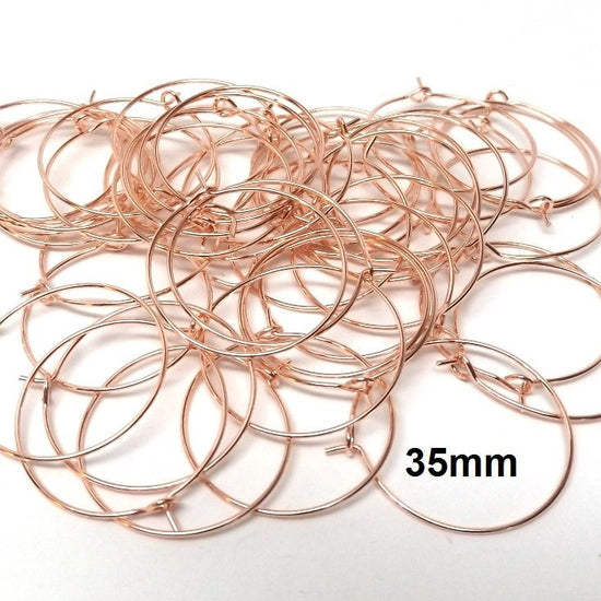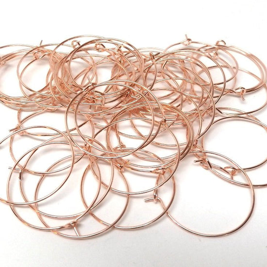 W017 - 100 Rose Gold Plated Wine Charm /Earwire Hoop Rings - 35mm - 1.38 inch - 20 Gauge (0.8mm Thick)