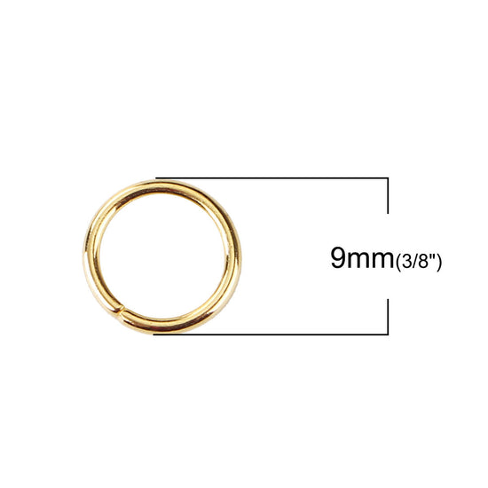 J072A - 1000 pcs Gold Plated Open Jump Rings - 9mm - 18 Gauge (1mm Thick)