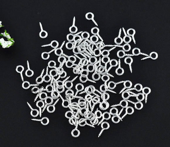 BA004 - 1000 pcs. Silver Plated Screw Eyes Bails Top Drilled - 8mm x 4mm