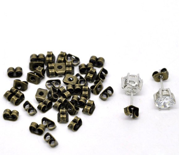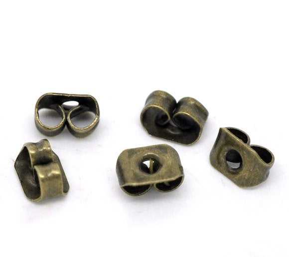 E018 - 100 pcs (50 Pairs) Antique Bronze Ear Nuts - 4mm x 6mm - Earring Stoppers! - Butterfly Design