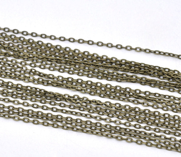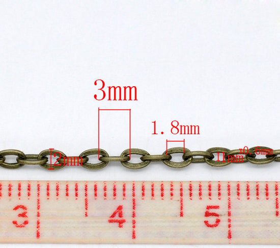 N109 - 10M (32.8 Ft) - Antique Bronze Tone Flat Link-Opened Chain - 3x2mm