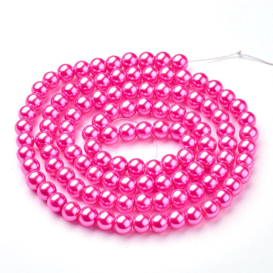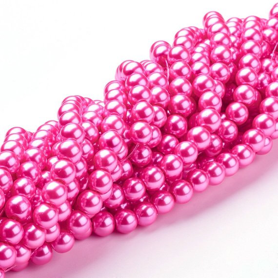 BD082 - 10mm Hot Pink Glass Pearl Imitation Round Beads - 16 inch strand - Approx 42 beads per strand - Hole Size: 1.5mm