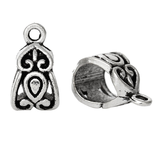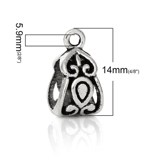 BA014 - 10pcs. Antique Silver Dangle Triangle Filigree Slider Spacer Bails with Loop - 14mm X 8mm - Fits European Cords
