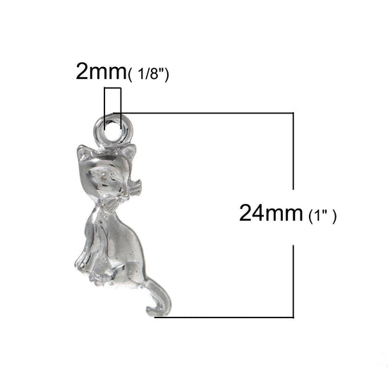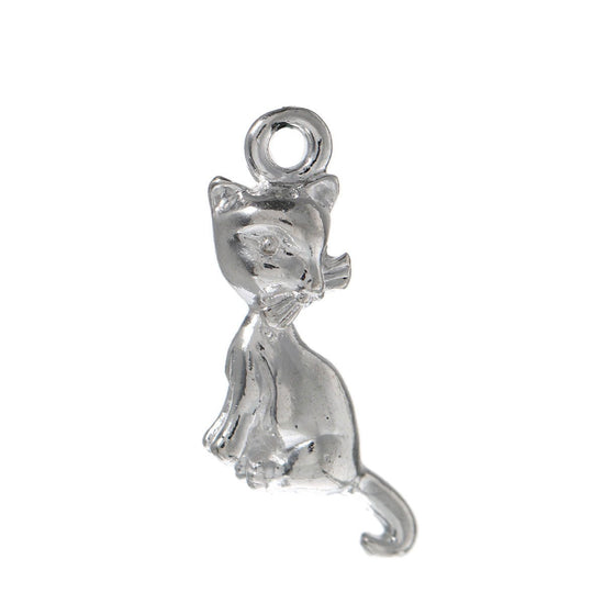 P280A - 10 pcs. Silver Plated Cat Sitting Charms Pendants - 24mm X 11mm