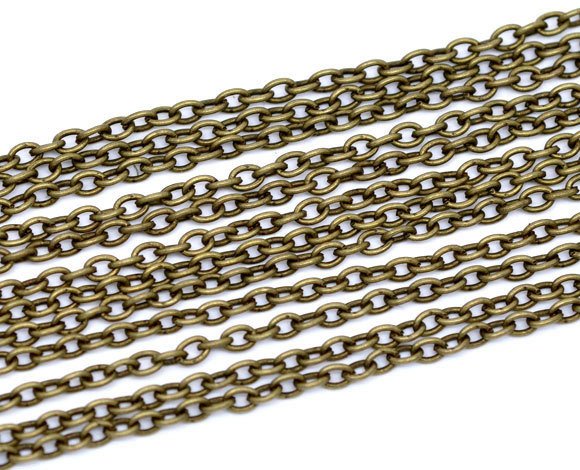 N004A - 12 pcs. Antique Bronze Textured Chain Link Necklaces 18" - (3 x 2mm Links) - Lobster Clasps - Claw Clasps