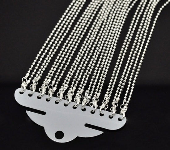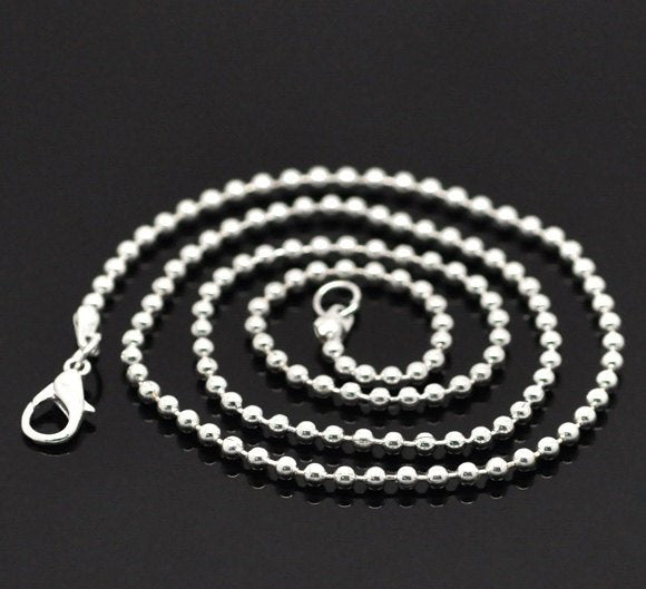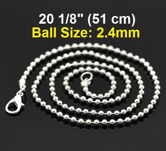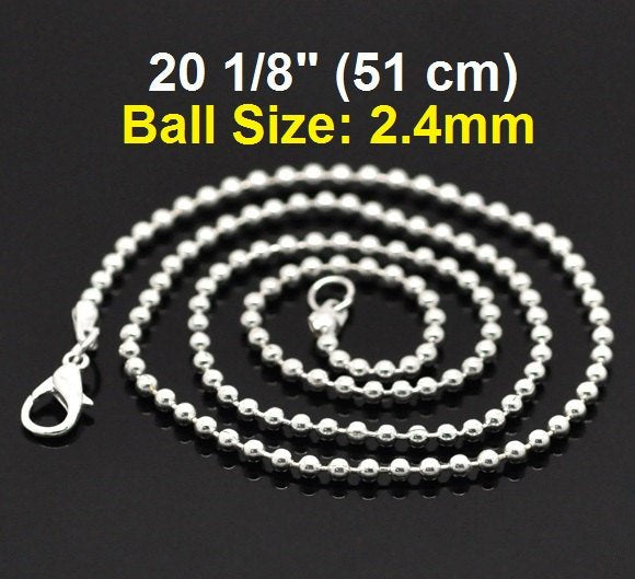 N087 - 12 pcs. Silver Plated Ball Chain Necklaces with Lobster Clasps - 51 cm (20 1/8") - Ball Size: 2.4mm - Claw Clasps