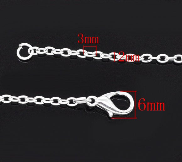 N002 - 12 pcs. Silver Plated Chain Link Necklaces 18" - (3x2mm) - Lobster Clasp