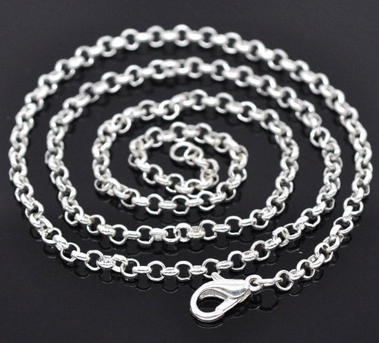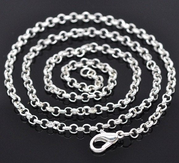 N063 - 12 pcs. Silver Plated Chain Link Necklaces 20" - (3.2mm x 0.5mm) - Claw Clasps - Lobster Clasps