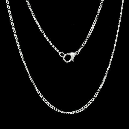 N067 - 12 pcs. Silver Plated Curb Chain Link Necklaces 17 3/4" - (3x2mm) - Lobster Claw Clasp