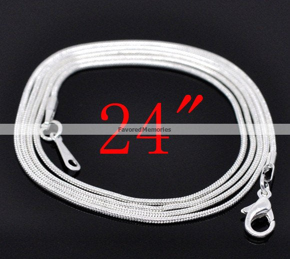 N096 - 12 pcs. Silver Plated Snake Chain Necklace 24" - (1.2mm)