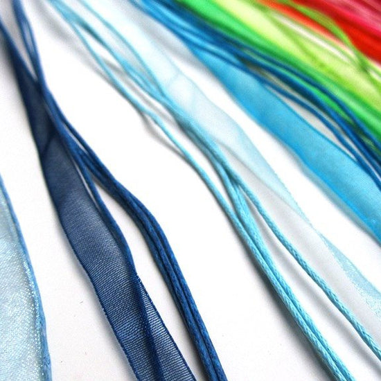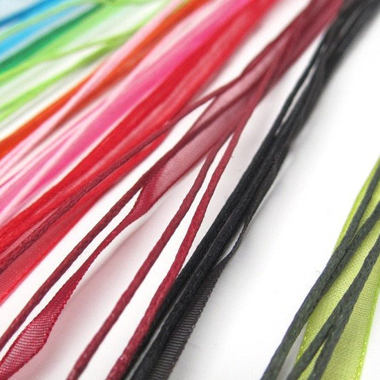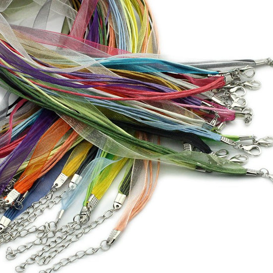 N034 - 15 pcs. Assortment of Organza Ribbon Waxen Cord Necklaces- 17 inch (43 cm)