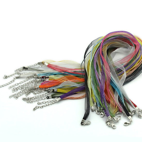Brand NEW 15 Assortment of Organza Ribbon Cord Necklaces – Wonderful for your glass tiles, scrabble tiles, glass pendants or anything that you can think of :)!