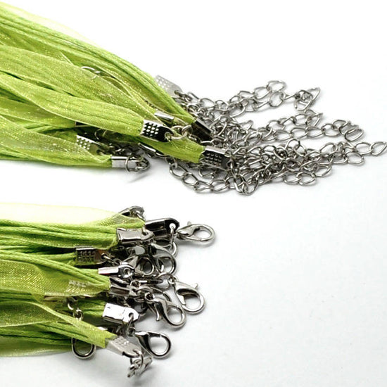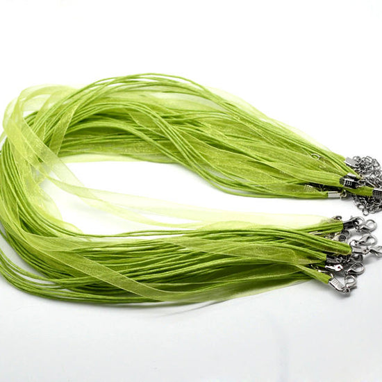 Brand NEW 15 Light Green Organza Ribbon Cord Necklaces – Wonderful for your glass tiles, scrabble tiles, glass pendants or anything that you can think of :)!