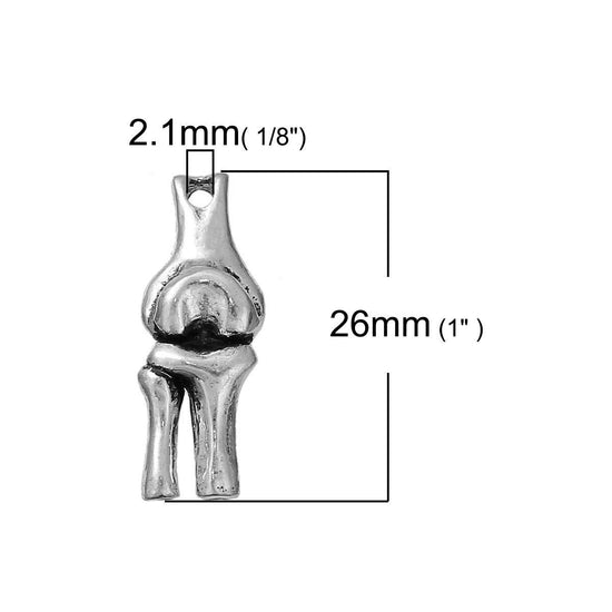 P197 - 1pc. Antique Silver Anatomical Human Knee Medical Charms Pendants - 26mm X 10mm (1 inch) - 3D - Double Sided