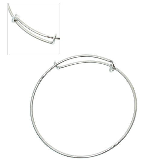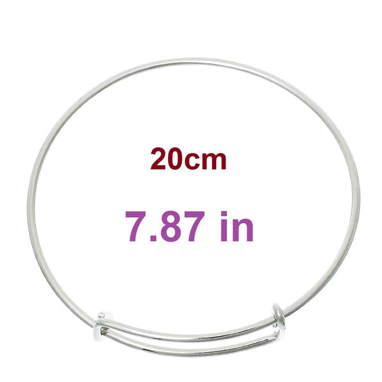 B006 - 1 pc. Silver Tone Bangle Adjustable Slide On Bracelets 20cm (7.87")
