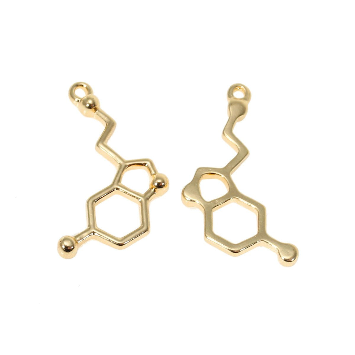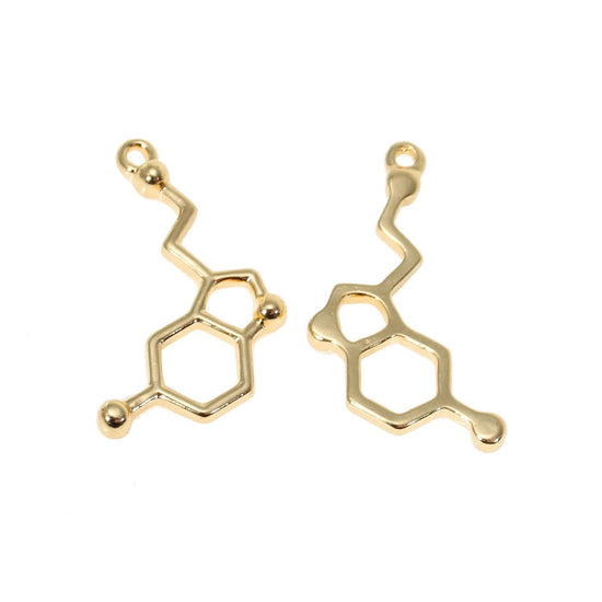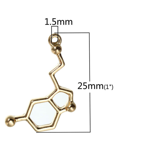 P212 - 10 pcs. Gold Plated Chemistry Science Molecule Serotonin Charms Pendants - 25mm x 13mm - 1 in x 0.5 in