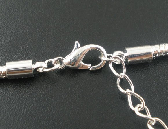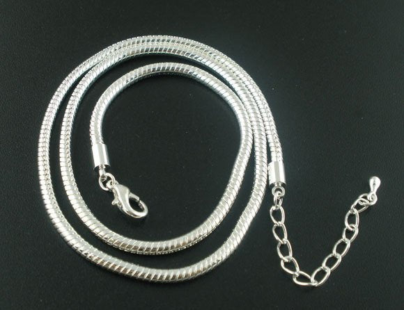 N084 - 2 pcs. Silver Plated Snake Chain Necklaces with Lobster Clasp 17.7" (45cm) - (3mm) - Fits European Beads and Large Hole Beads-Made of Copper