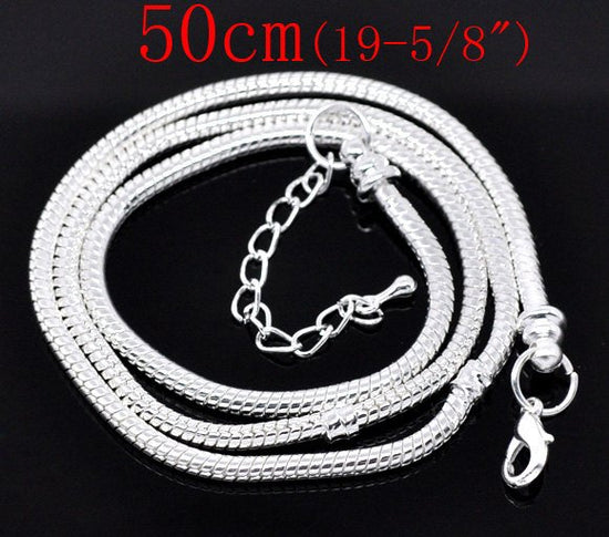 N085 - 2 pcs. Silver Plated Snake Chain Necklaces with Lobster Clasp 19.7" (50cm) - (3mm) - Fits European Beads and Large Hole Beads - Claw Clasps