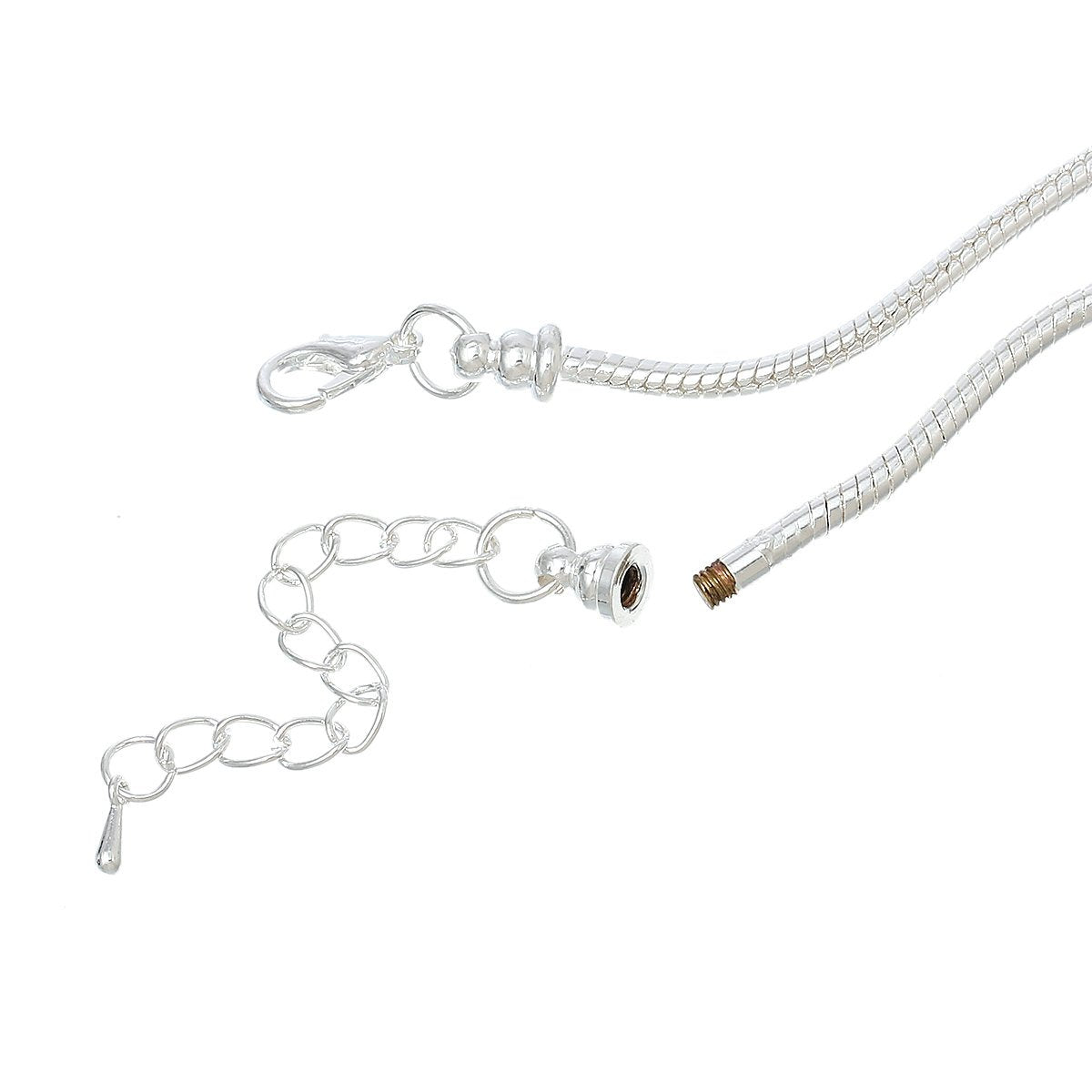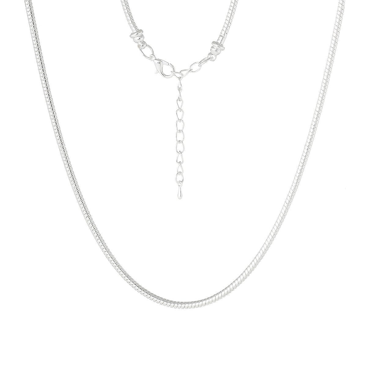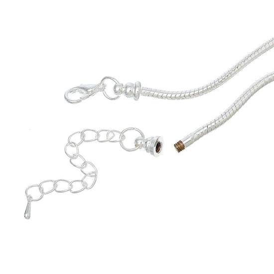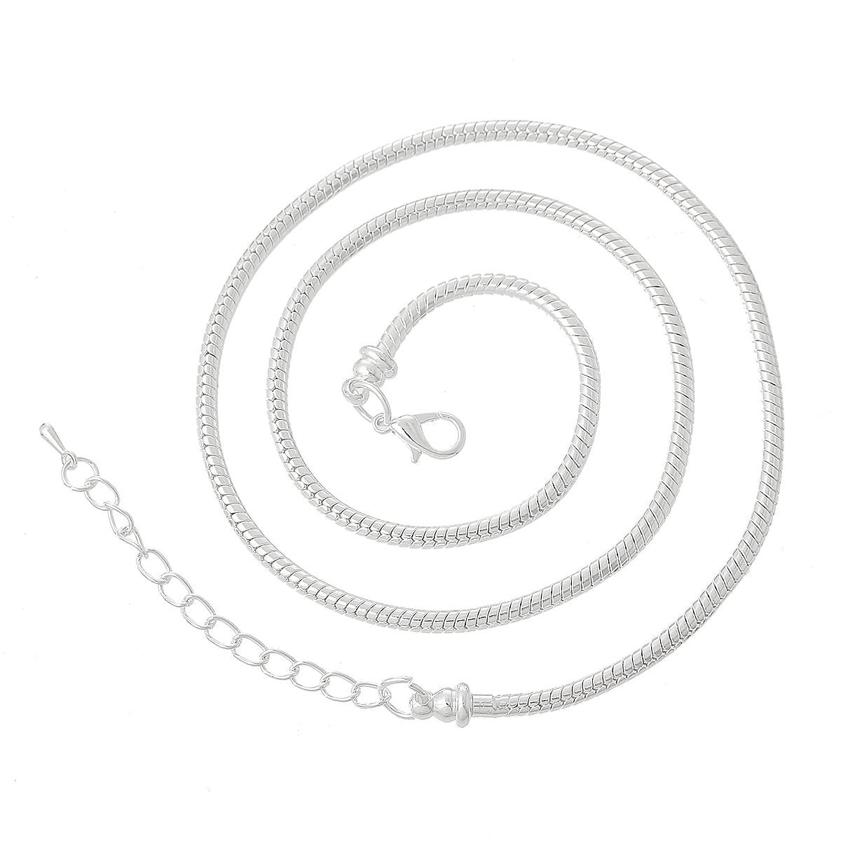 N076 - 2 pcs. Silver Plated Snake Chain Smooth Necklaces - Claw Lobster Clasp 19.7" (50cm) - (3mm) - Fits European Beads and Large Hole Beads!
