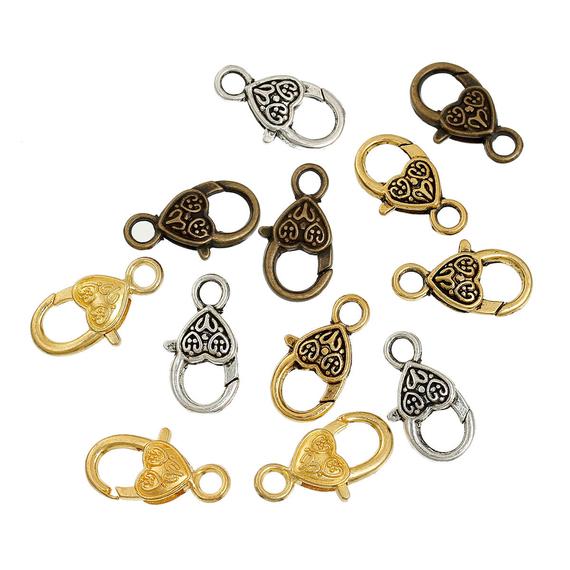 CL084 - 20 pcs. Assortment of Heart Lobster Clasps - 26mm X 14mm - 25mm x 12mm (1 inch) - 4 Colors - Claw Clasps