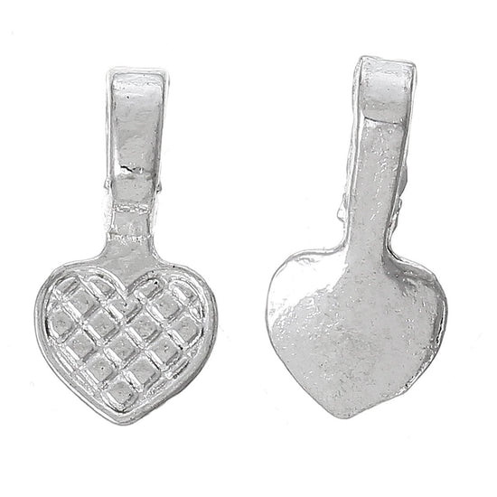 Silver Plated Small Heart Tag Glue On Bails