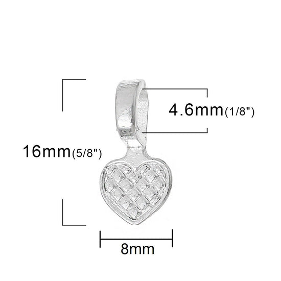 BA054 - 200 pcs. Silver Plated Small Heart Tag Glue On Bails - 16mm x 8mm