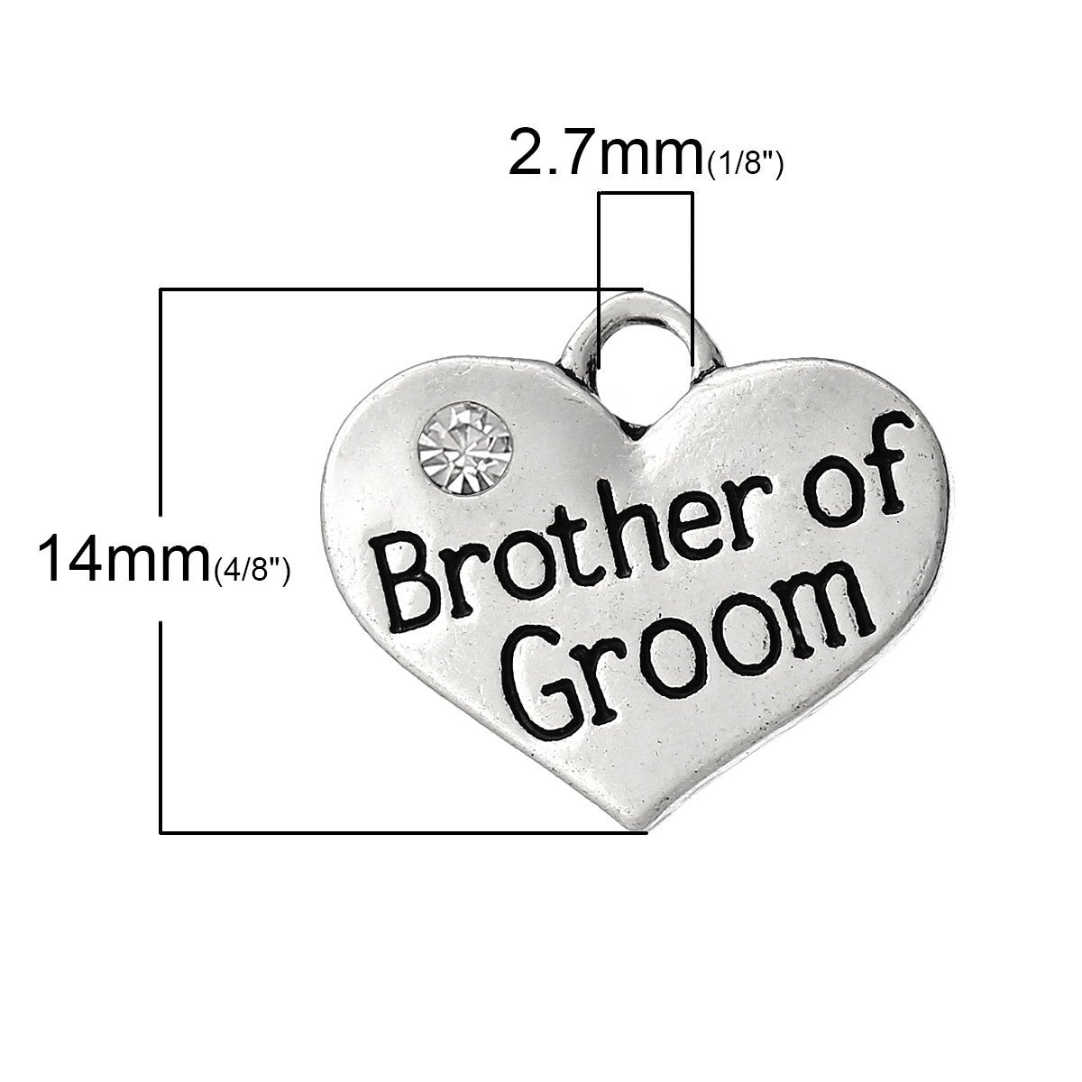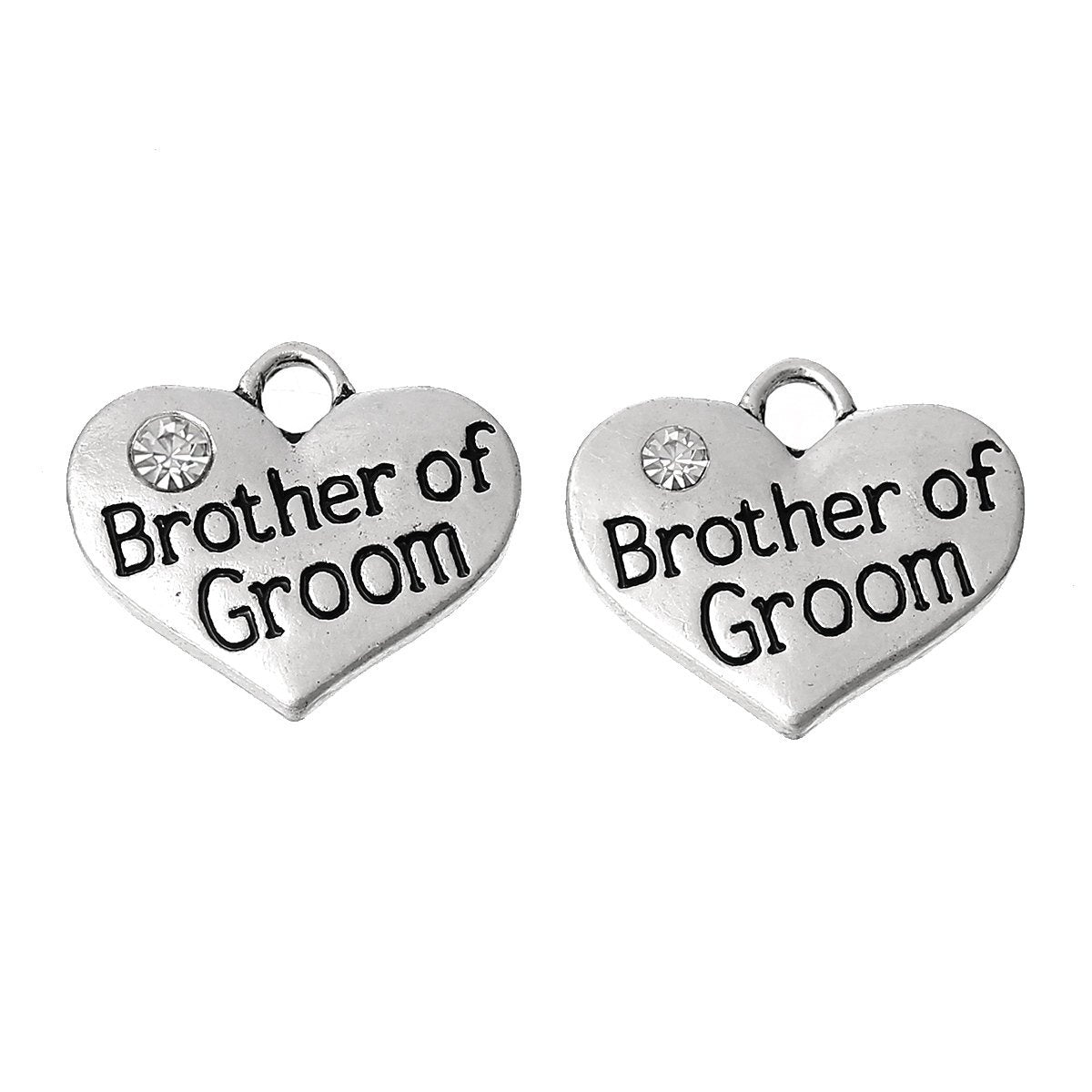 P056 - 4pcs. Antique Silver "Brother of Groom" charm with rhinestone- 16 mm X 14 mm