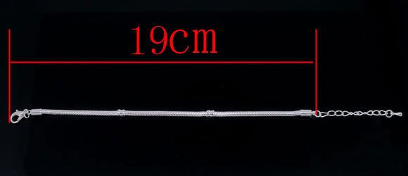 B048 - 4 pcs. Silver Plated European Snake Chain Bracelets with Chain Extenders - Lobster Claw Clasps - Cylinder Cap - 19cm (7.5") - 2.5mm Thick