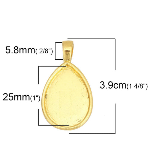 P146 - 5 pcs. Gold Plated Teardrop Bezel Cabochon Pendant Tags Trays - 25mm x 18mm Glue Pad - 25x18mm - 18x15mm