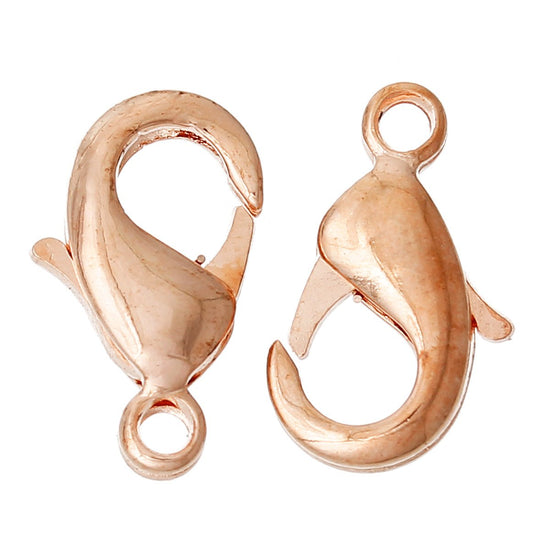CL090 - 50 pcs. Rose Gold Plated Lobster Parrot Clasps - 12mm x 7mm - Made of Copper - High Quality! Claw Clasps