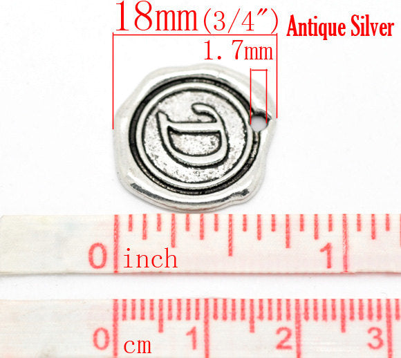 P112 - 5pcs. Antique Silver LARGE Letter "D" Alphabet Letter - 18mm x18mm - Wax Design