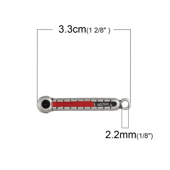 P265 - 5pcs. Antique Silver Thermometer Medical Enamel Charms Pendants - 33mm X 6mm - Can hold 12SS Rhinestones