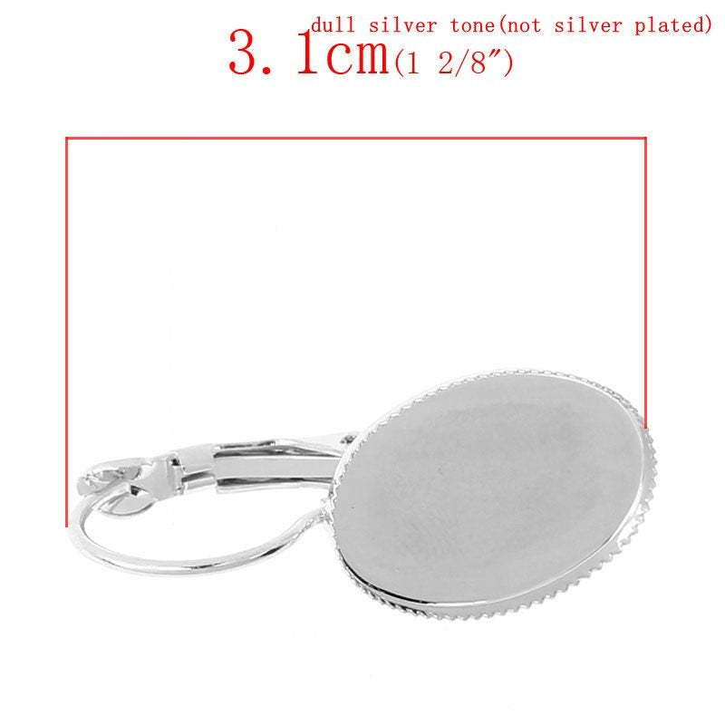 E015 - 6 pcs. Silver Tone Earring Clips Settings Lever Back Bezels Cabochons - 18mm x 13mm Glue Pad Setting - Oval - 18x13mm - 13x18mm