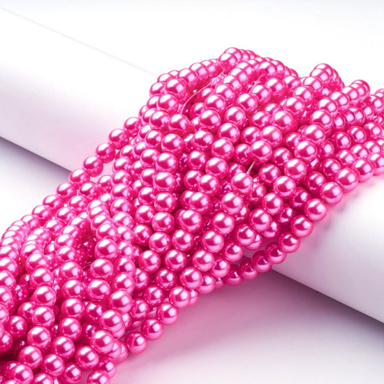 BD097 - 8mm Hot Pink Glass Pearl Imitation Round Beads - 32 inch strand