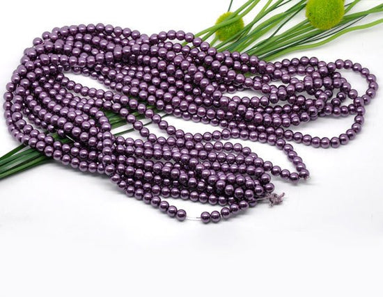 BD106 - 8mm Purple Glass Pearl Imitation Round Beads - 32 inch strand