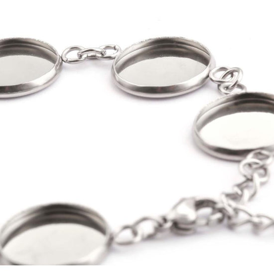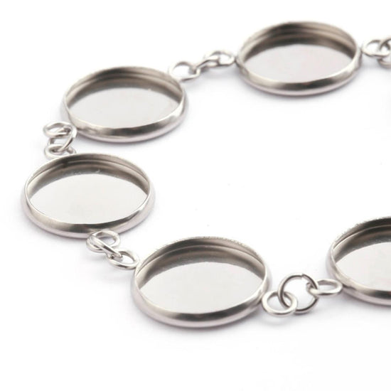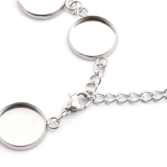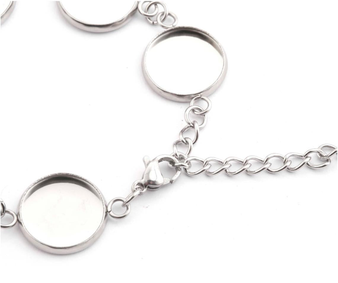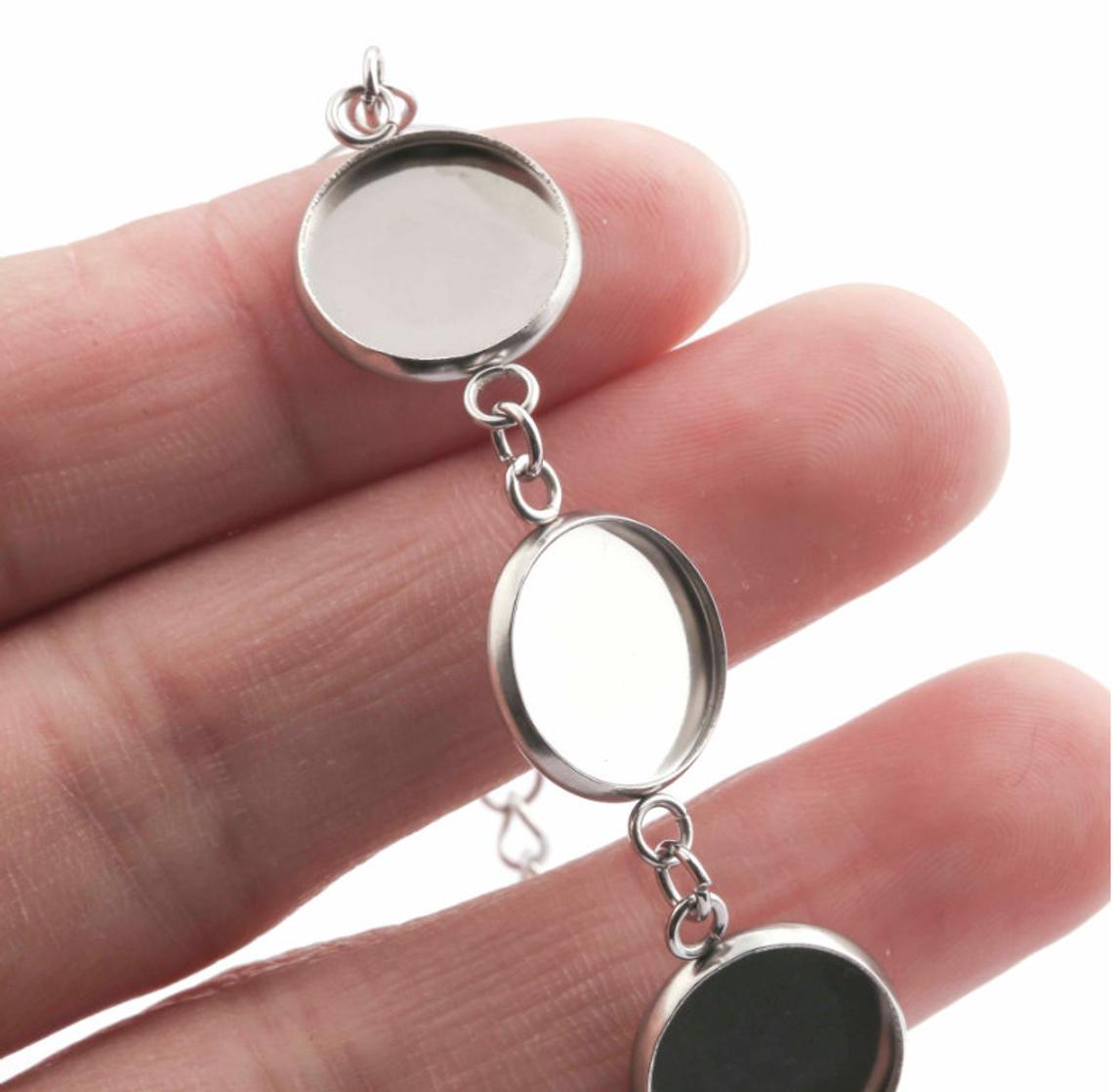 B044 - 3 pcs. 304 Stainless Steel Silver Tone Chain Bracelets - 6.1" (15.5cm) - 12mm Bezels - Extends to 7.09" (20cm) with Extender Chain!