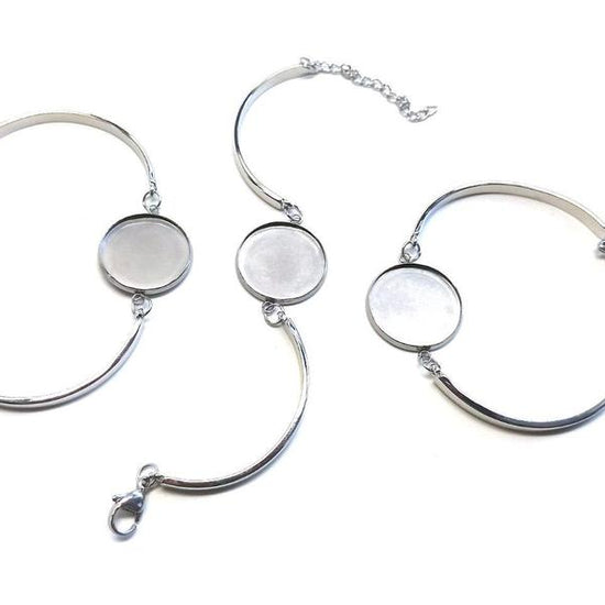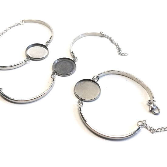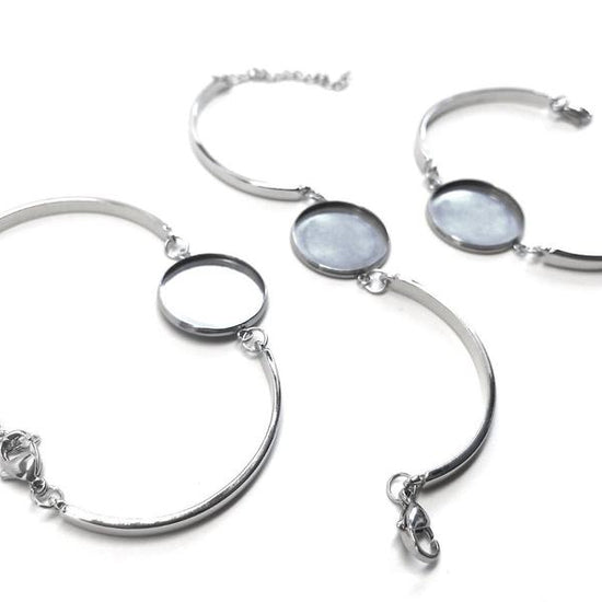 B105 - 2 pcs. 316 Stainless Steel Silver Tone Bezel Cabochon Bracelets - 25mm Glue Pad - with Extender Chain