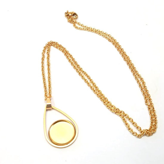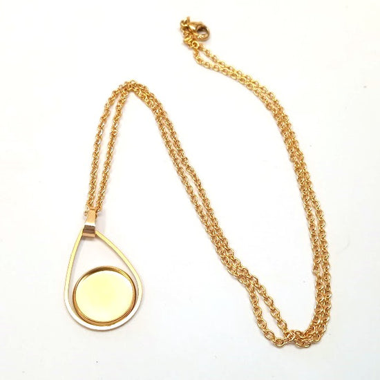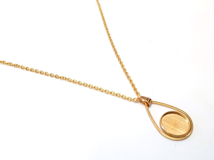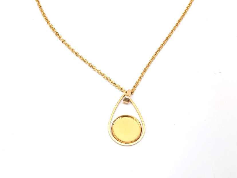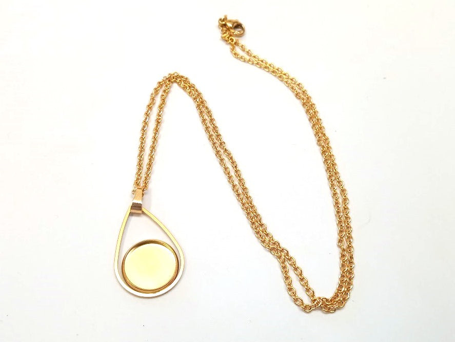 B118 - 3 pcs. 304 Stainless Steel Golden Chain Necklaces - 20" (50.8cm) - 12mm Bezel - Teardrop Style