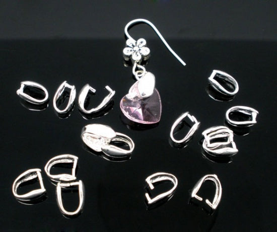 BA062 - 20 pcs. Silver Plated Pinch Clip Bails for Pendants and Beads - 8mm x 6mm