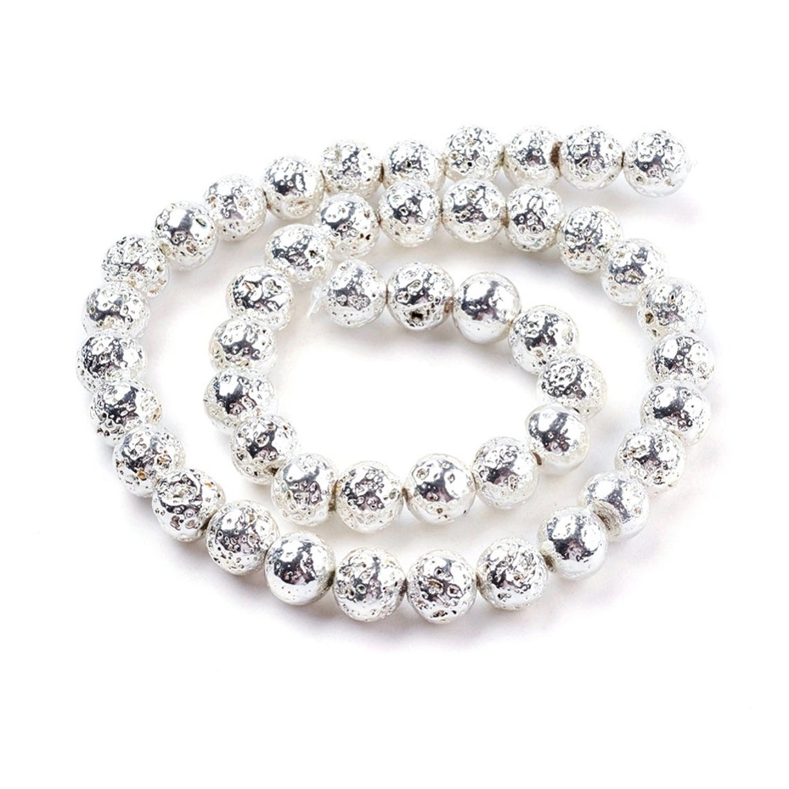 Items: Electroplated Natural Stone Lava Round Beads – Silver Plated