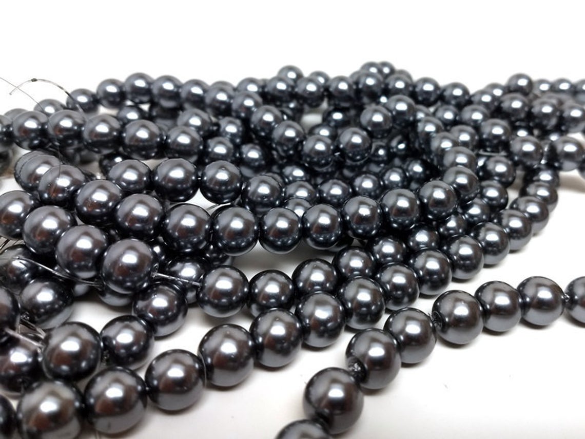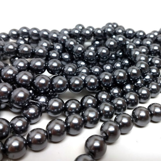 Silver Gunmetal Glass Pearl Imitation Round Beads
