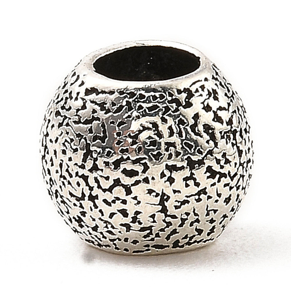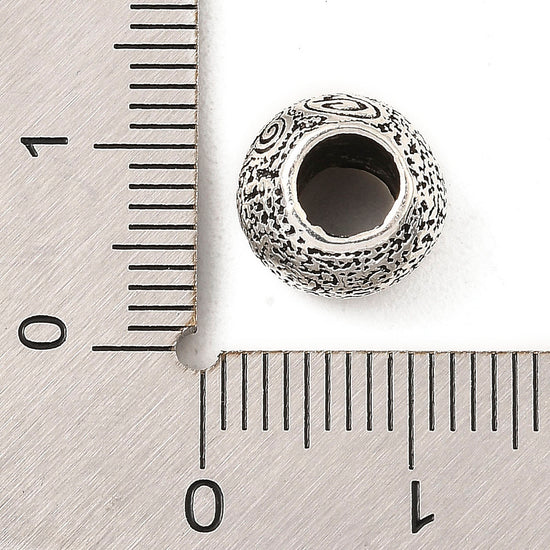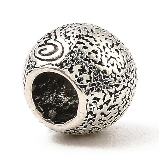 BD075 - 50 pcs. Antique Silver Metal Textured Round Ball Spacer Beads - 10mm - Large Hole: 5mm - Fits European Cords and Paracord!