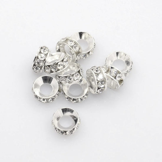 BD178 - 20 pcs. Silver Plated Clear Rhinestone Rondelle Spacer Beads - 7mm x 3.3mm - Hole Size: 3.5mm