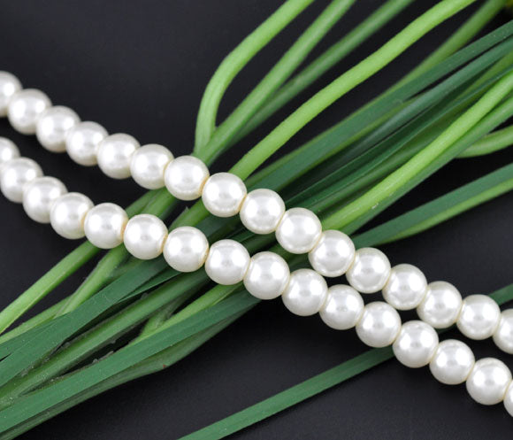 BD214 - 4mm White Glass Pearl Imitation Round Beads - 32 inch strand - Approx. 210 beads - Hole Size: 1mm