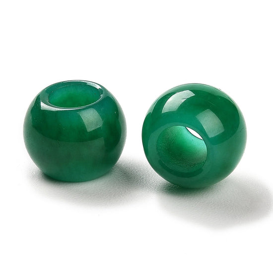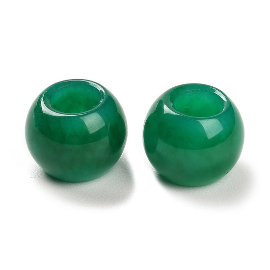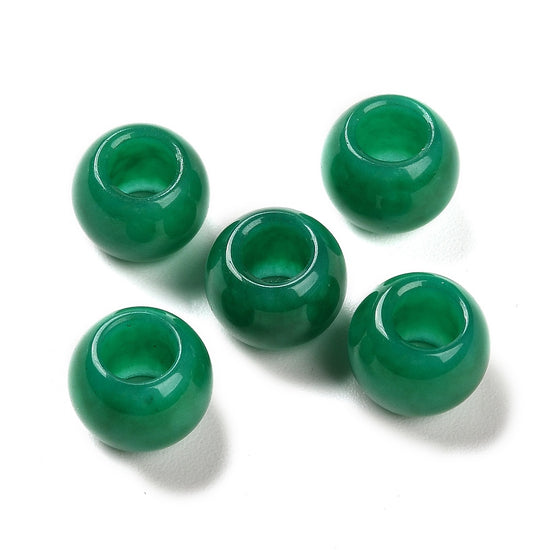 BD220 - 10 pcs Green Smooth Gemstone Natural Stone Round Spacer Beads - Dyed Jade - 12mm - Large Hole: 5.5mm - Fits European Cords and Paracord!