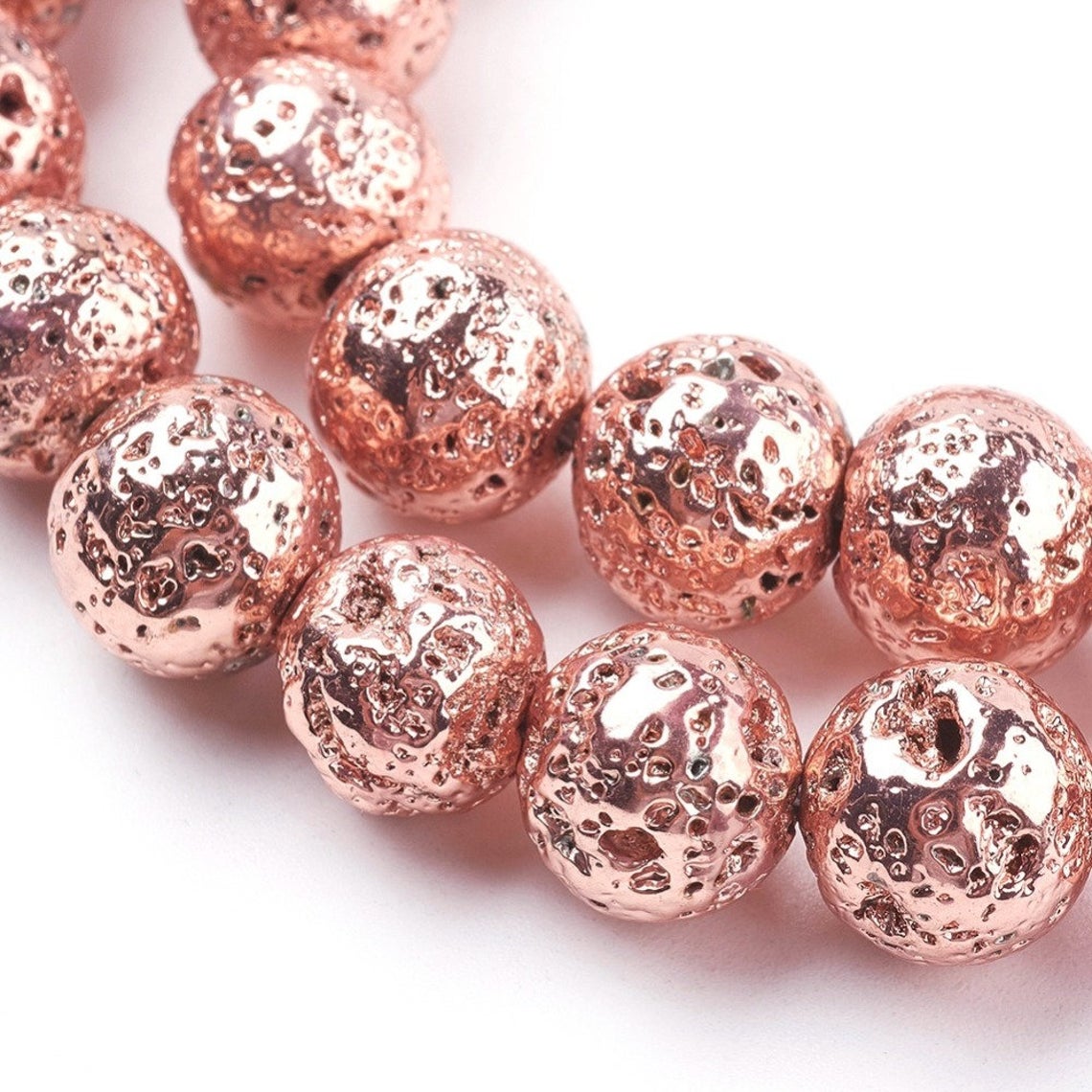 Items: Electroplated Natural Stone Lava Round Beads – Rose Gold Plated