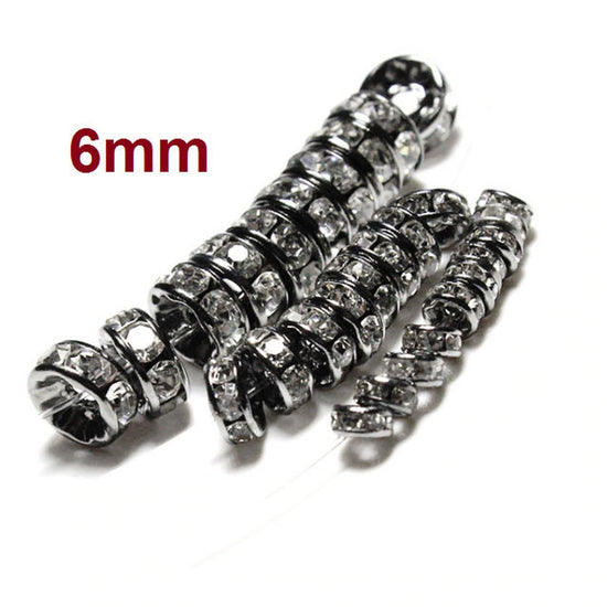 BD273 - 20 pcs Gunmetal Black Clear Rhinestone Rondelle Spacer Beads - 6mm x 3mm - Grade A - Hole Size: 1.5mm - Straight Edge
